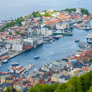 Bergen is one of the larger Norwegian cities we visited. I didn't grab a photo in 2019, but along the main square is a medieval wharf with many colorful and iconic old-fashioned boat houses. Called Bryggen, you can shop, eat, and even grab a nice cold beer there.